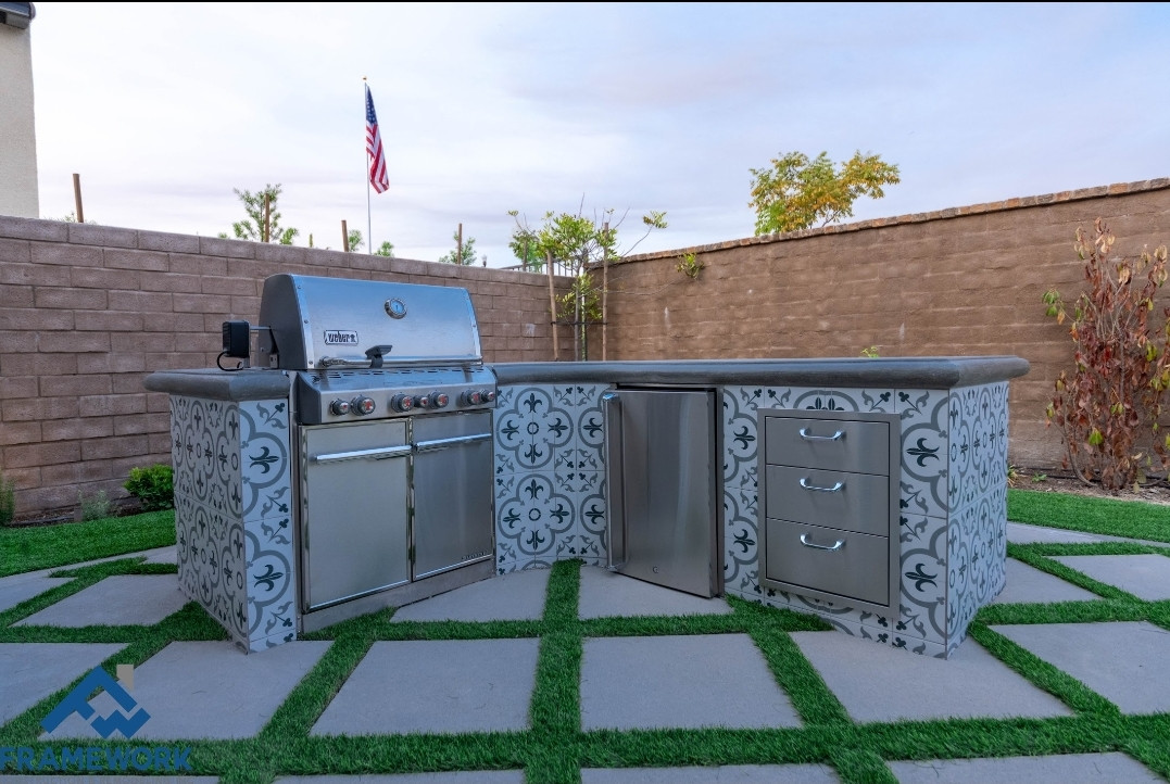 We met the owner of the business, Reggie, greater than 4 years ago and maintained a relationship with the owner until we could break the ground. With Reggie and his team, we had a complete backyard renovation and we now have our own private and beautiful oasis. BEFORE: We had a left over jacuzzi platform, leftover and obsolete flower bench, and a left over old-timey cement platform for perhaps what used to be an overhang. Additionally, the yard was muddy and unkept. AFTER: We now have a well-designed beach-front entrance pool, with a huge deep end and a platform raised jacuzzi. We have a beautiful pergola, and a hand-crafted built-in gas grill with a matching fire pit. The grill and the fire pit are stack-stone and colored-cement combination. Also, all concrete was demolished and in its place are beautiful Tuscan paver stones. Reggie's crew also gave us a top of the line luxurious self-draining turf for a dog run and/or additional entertainment space. Reggie, as the owner, worked with us for the duration of the project which was not without its fair share of unforeseen obstacles. Reggie is very customer service oriented and helped us navigate those obstacles. From the beginning, Reggie helped with the design, and worked with us as the design changed over time (as is common). Reggie is very up front about the costs of the project but is also willing to negotiate to help the customer stay within budget. One of the most amazing things that I can say is that the price that was quoted greater than 4 years ago was the same price 4 years later in the midst of covid when everything should have quadrupled. Thank you Reggie and Framework Construction for an amazing new back yard.We can't wait to use it in 2022.